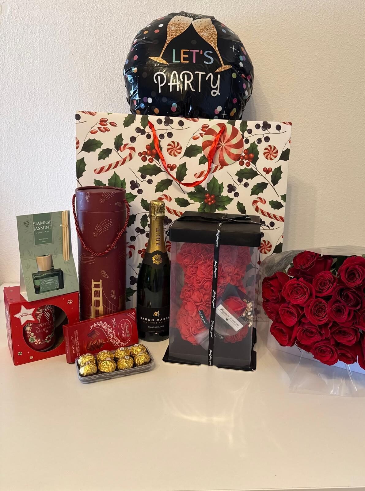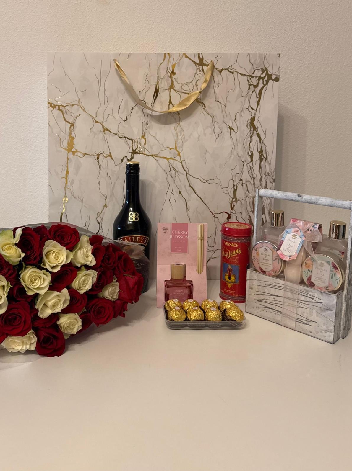 Este set combina flores, dulces y aromas en una presentación cuidada al detalle.